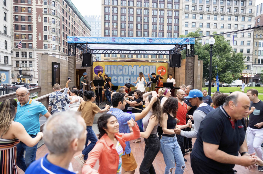 In partnership with our community curators Ágora Cultural Architects and Departure Arts, two of the premiere cultural presenting organizations in Greater Boston, and Hernan Choque of beloved Salsa studio Salsa y Control, UnCommon’s Salsa Nights feature a live Salsa band led by Zayra Pola, DJ Hernan Choque, free community Salsa dance lessons from Salsa y Control, professional performances, and open dance. The Common comes to life with Salsa beats and UnCommon provides an unforgettable opportunity for shared, cultural experiences.