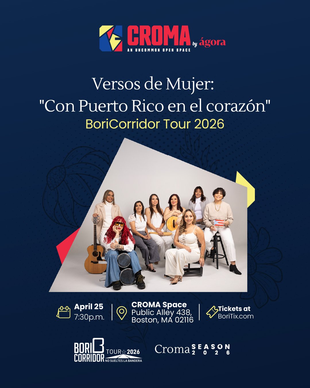 Versos de Mujer brings Puerto Rican traditional music to life through the artistry of women trovadoras and instrumentalists. Their performance preserves cultural heritage while sharing its passion and authenticity with the diaspora during the BoriCorridor Tour 2026 edition.